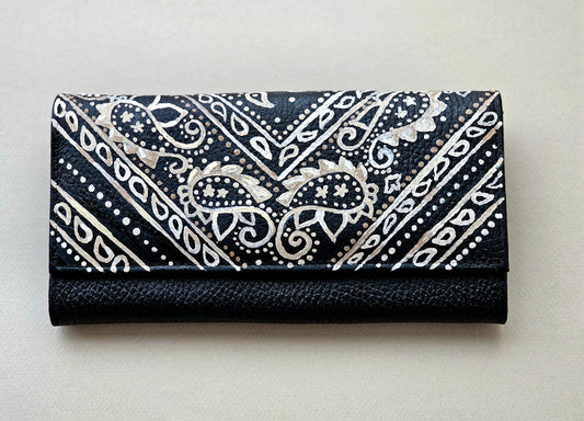 Leather Wallet Black White Flowers