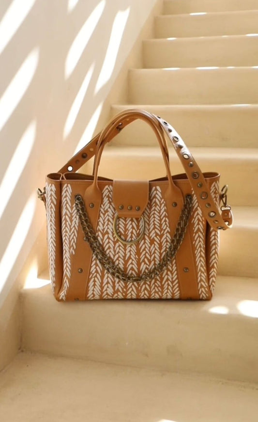 Leather Bag with Ring Beige X Patterns