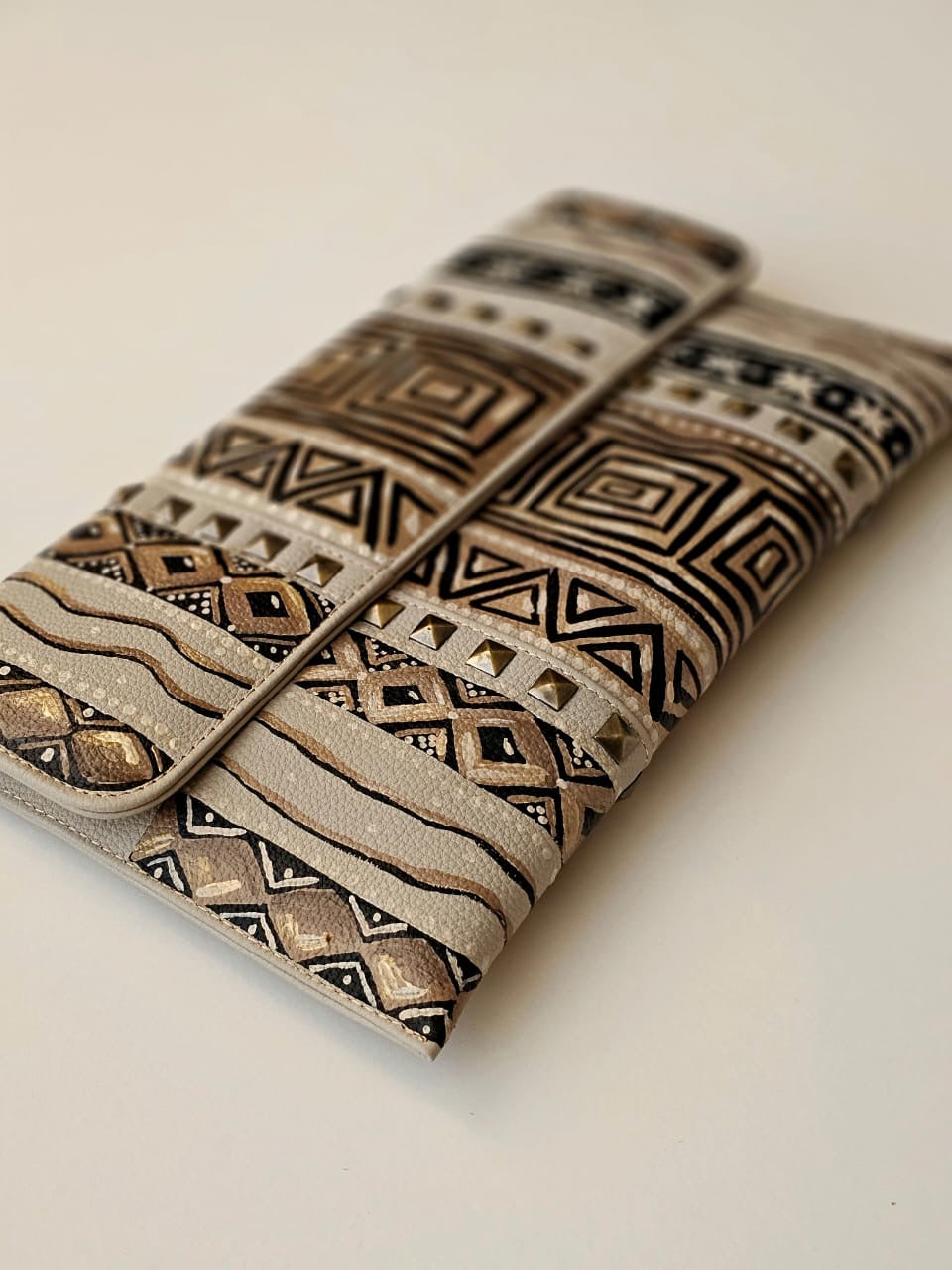 Leather Envelope with Studs Beige X Geometric